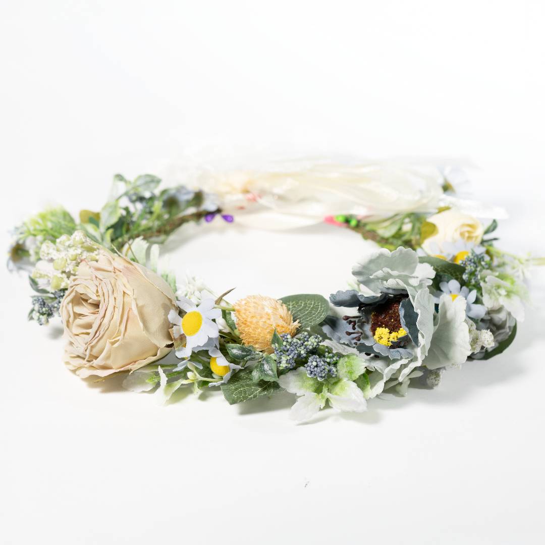 Mākslīgo ziedu vainags ar zilganiem ziediem Mākslīgo ziedu galvas vainadziņš ir elegants un ilgmūžīgs aksesuārs,...