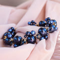 Tamsiai mėlynos spalvos papuošalų rinkinys "kvadratinės smeigės ir perlų apyrankė"
