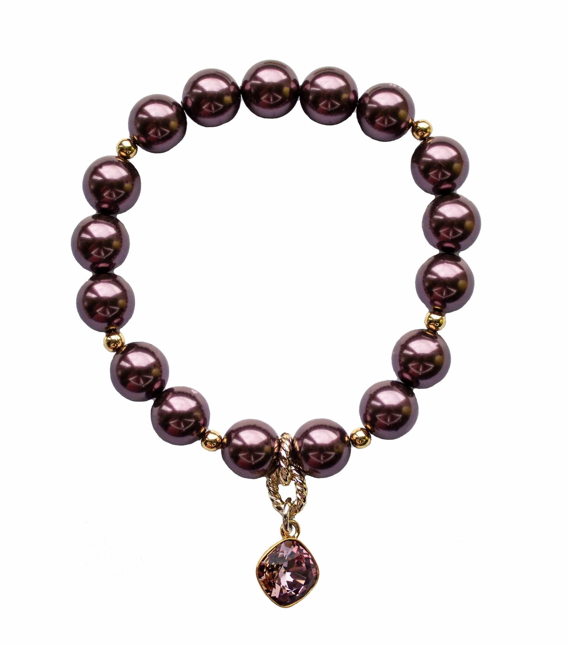 Grezna pērļu rokassprādze ar kristāla piekariņu