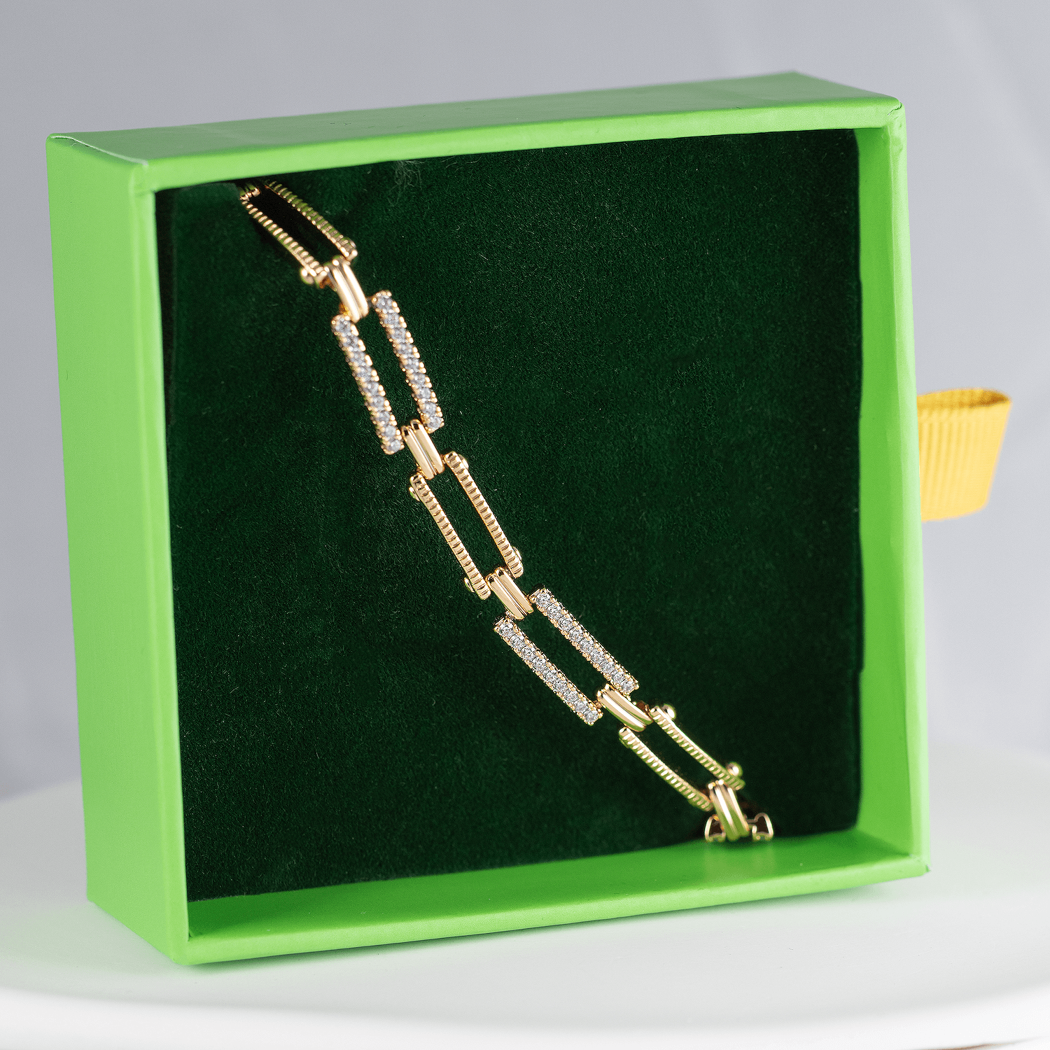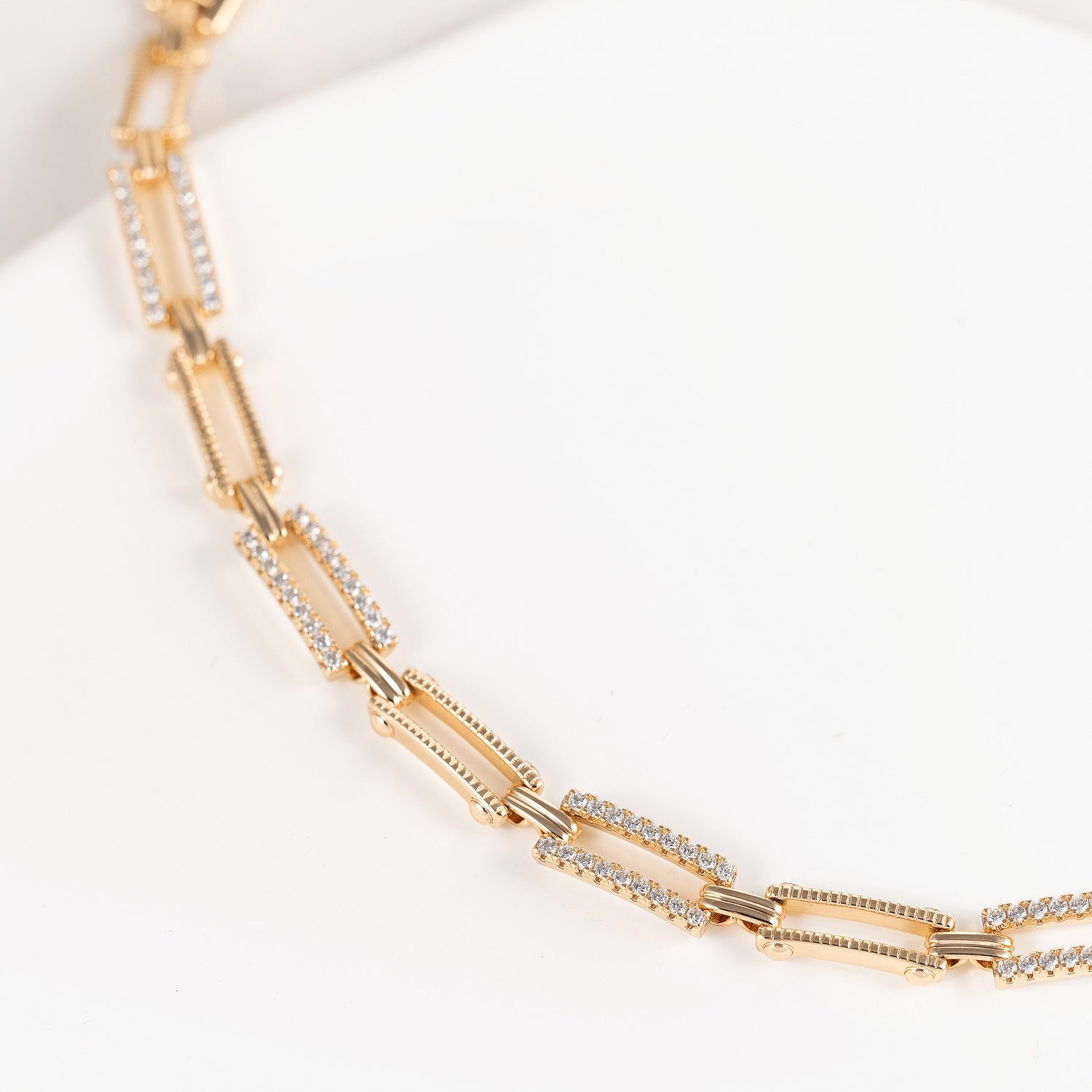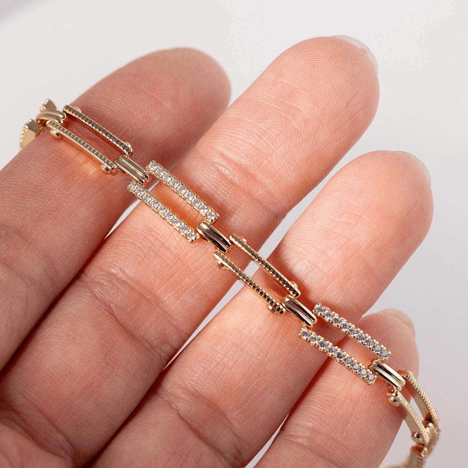 Kristālu un rozā zelta rokas ķēdīte EMĪLIJA. Klasiska kombinācija, kas piestāvēs gan ikdienai, gan svētku reizēm.