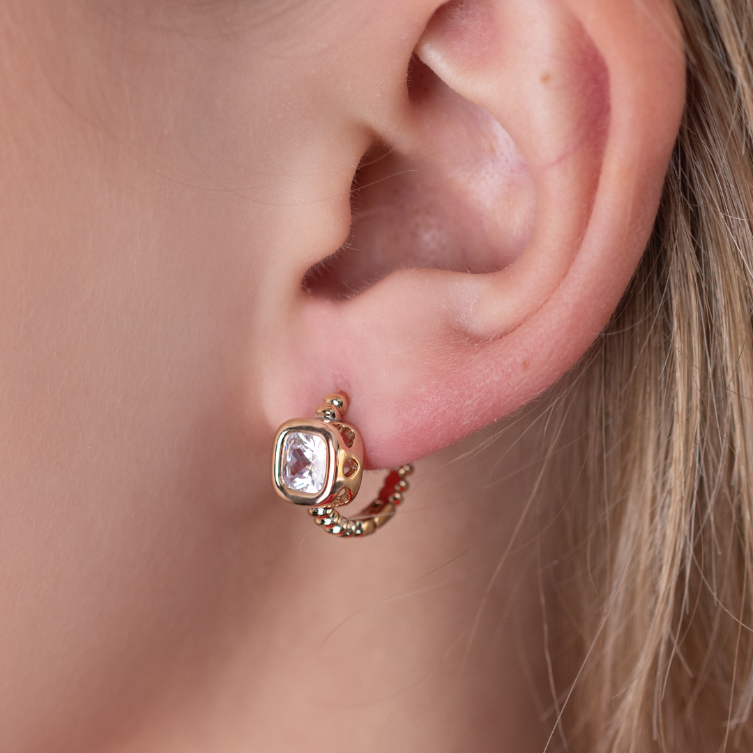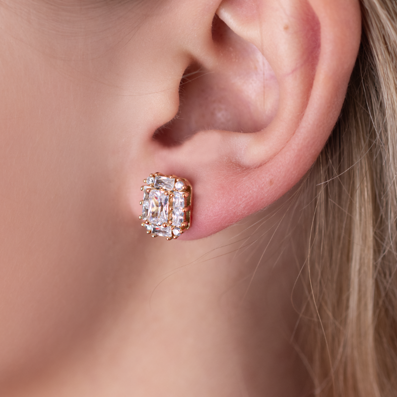 Eleganti kristālu auskari ar rozā zelta pārklājumu. Auskari nesūbē un ir ūdensnoturīgi. Auskariņi ir antialerģiski. Izvēlies savu auskaru veidu - viegli nagliņauskari ikdienai, grezni un nokareni auskari īpašai reizei, mirdzoši kristālu auskari dāvanai vai klasiski riņķīšu auskari elegantam tēlam. Apzeltīti auskari ar kristāliem būs lieliska ideja dāvanai sievietei.