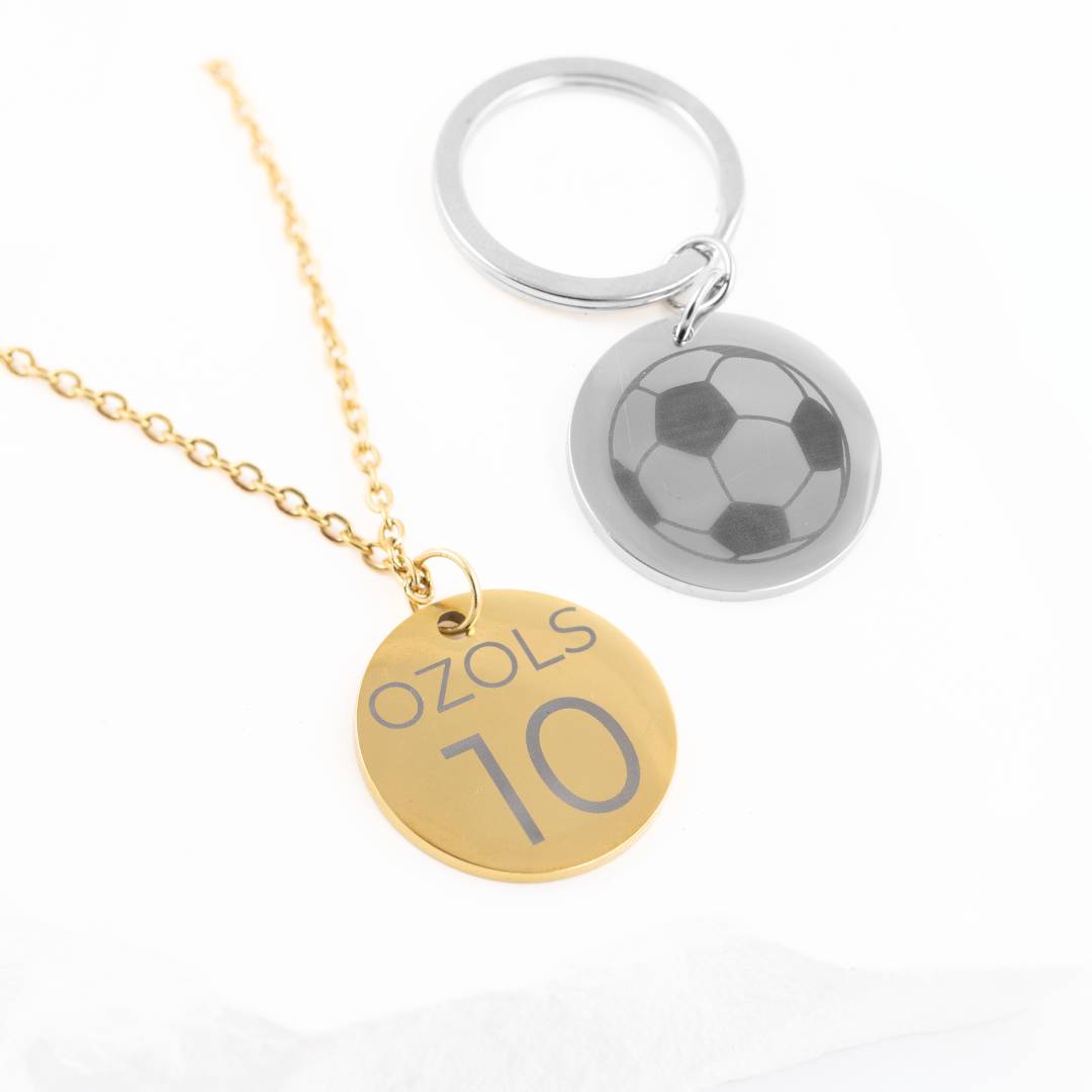 Personalizēts atslēgu piekariņš vai kaklarota ar basketbola, futbola bumbas gravējumu Personalizēts atslēgu piekariņš ar Tevis...