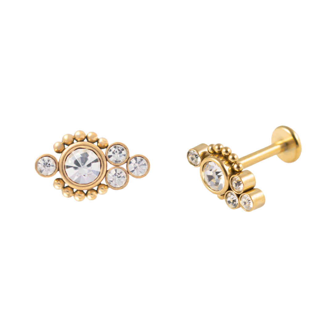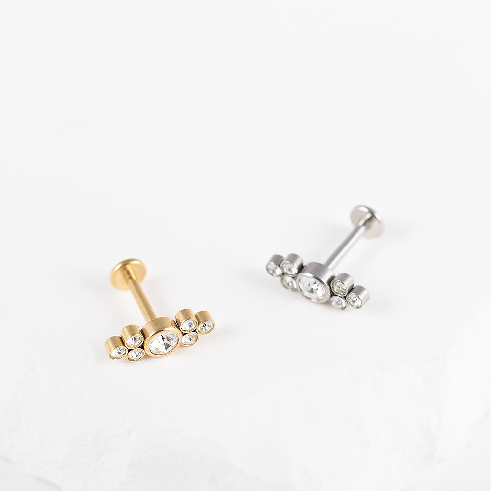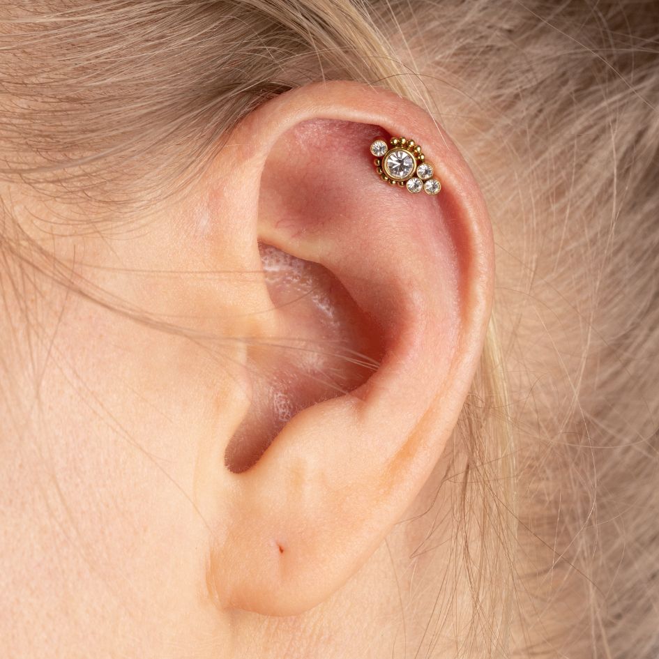 Apzeltīti un apsudraboti pīrsingi ar kristāliem. Pīrsingu kolekcijā atradīsiet dažādas stilīgas un oriģinālas rotaslietas, kas piemērotas caurumiem dažādās auss vietās, piemēram, hēlikss un labretes tipa pīrsings. Piedāvājam arī pīrsingus bez kristāliem dažādās formās.