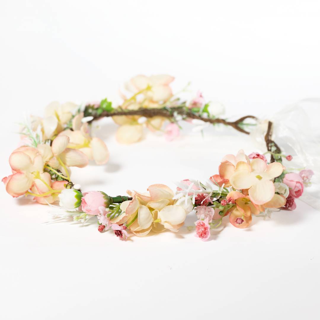 Mākslīgo ziedu vainags ar gaiši rozā ziediem