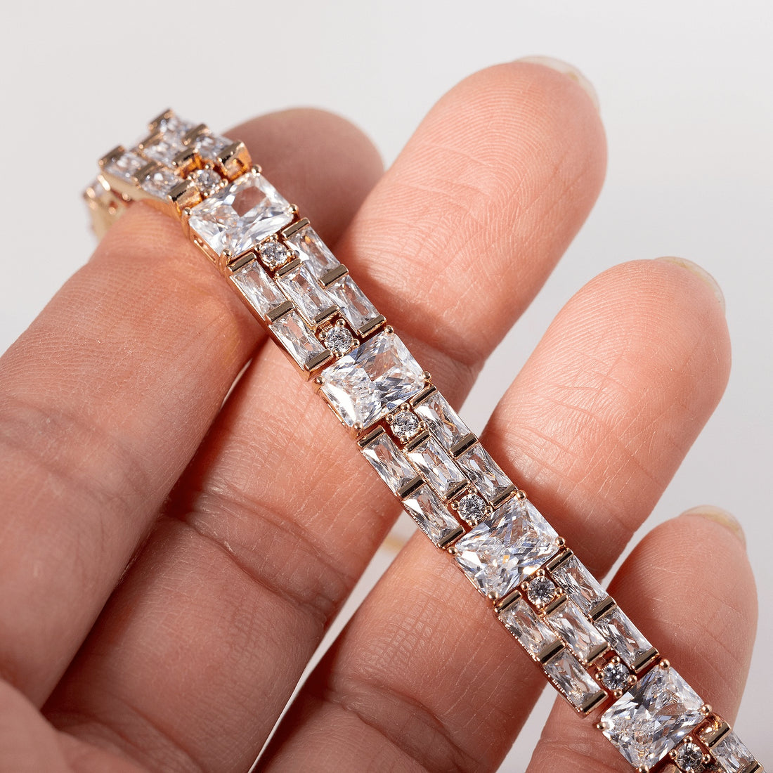 Kristālu rokassprādze 'KARINA' Kristālu un rozā zelta rokas ķēdīte KARINA. Klasiska kombinācija, kas piestāvēs gan...
