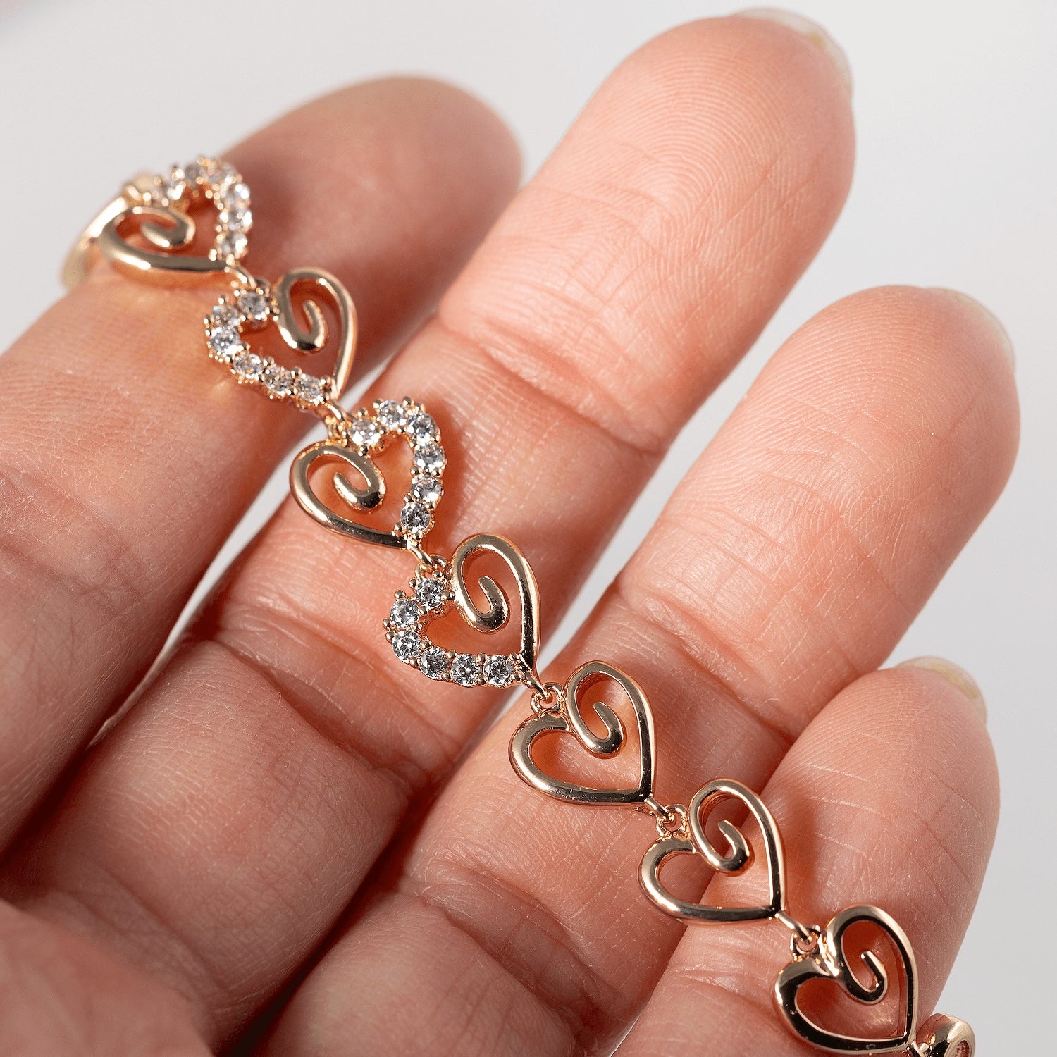 Kristālu un rozā zelta rokas ķēdīte MELITA. Klasiska kombinācija, kas piestāvēs gan ikdienai, gan svētku reizēm.